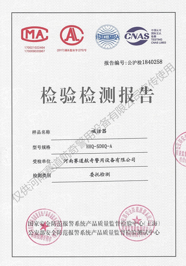 产品检测证书