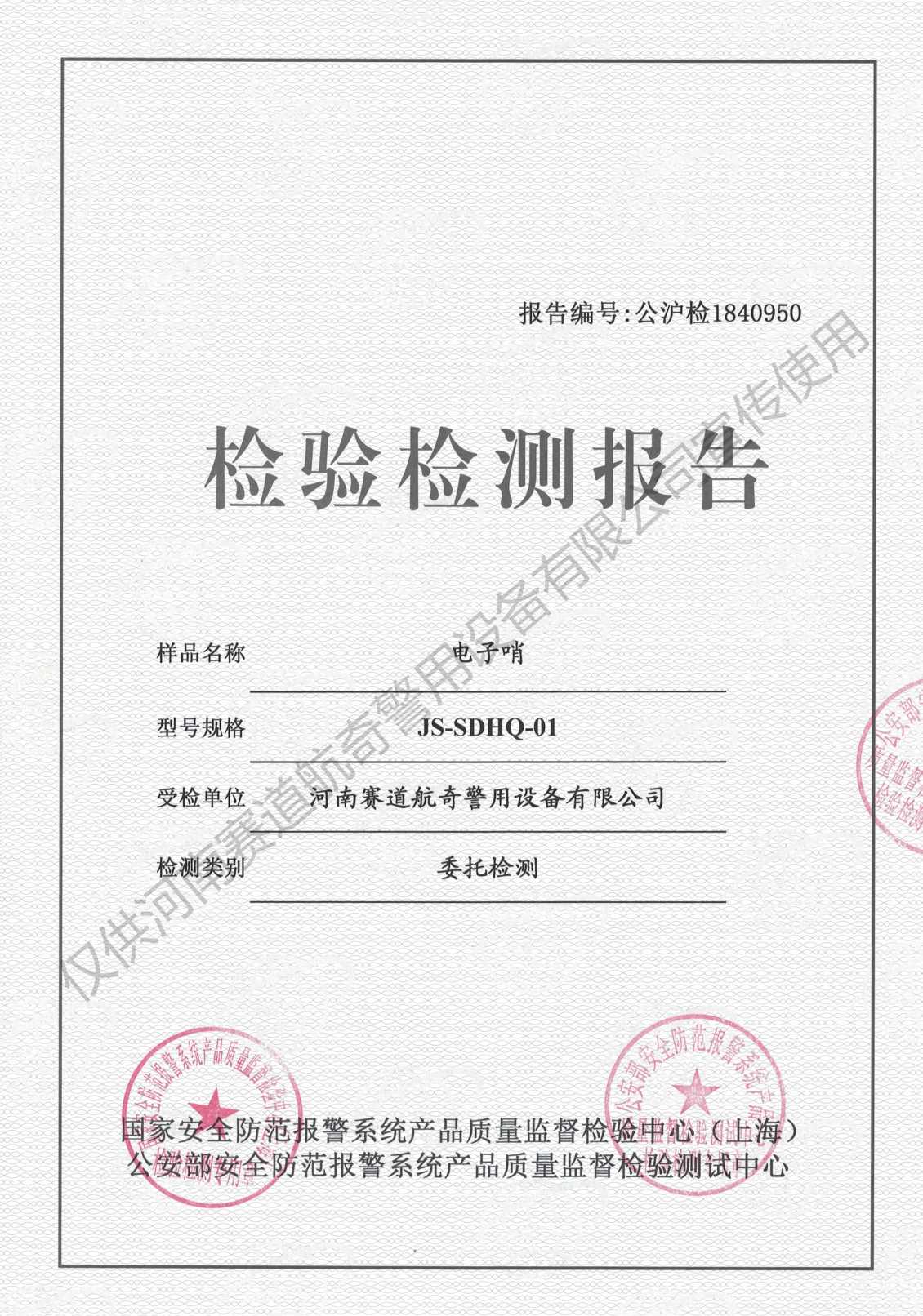 产品检测证书