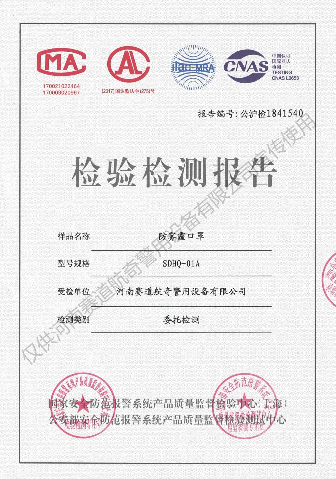 产品检测证书
