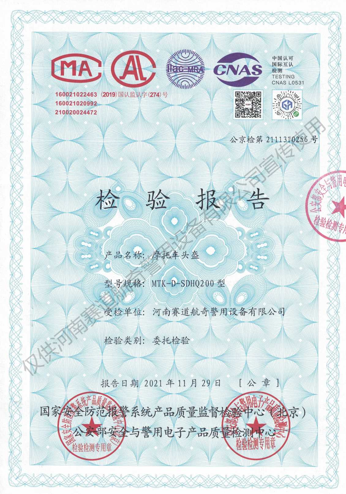 产品检测证书