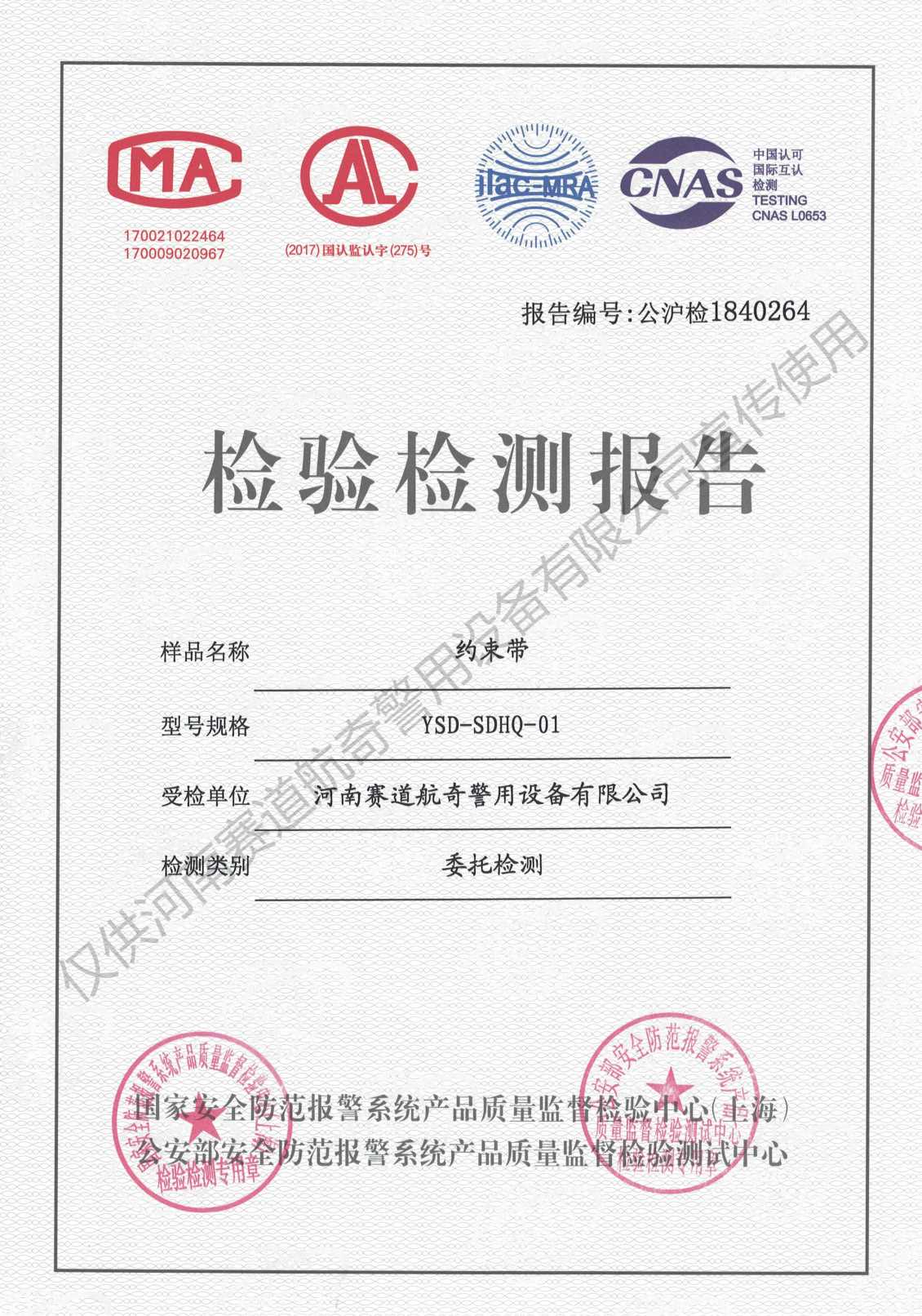 产品检测证书