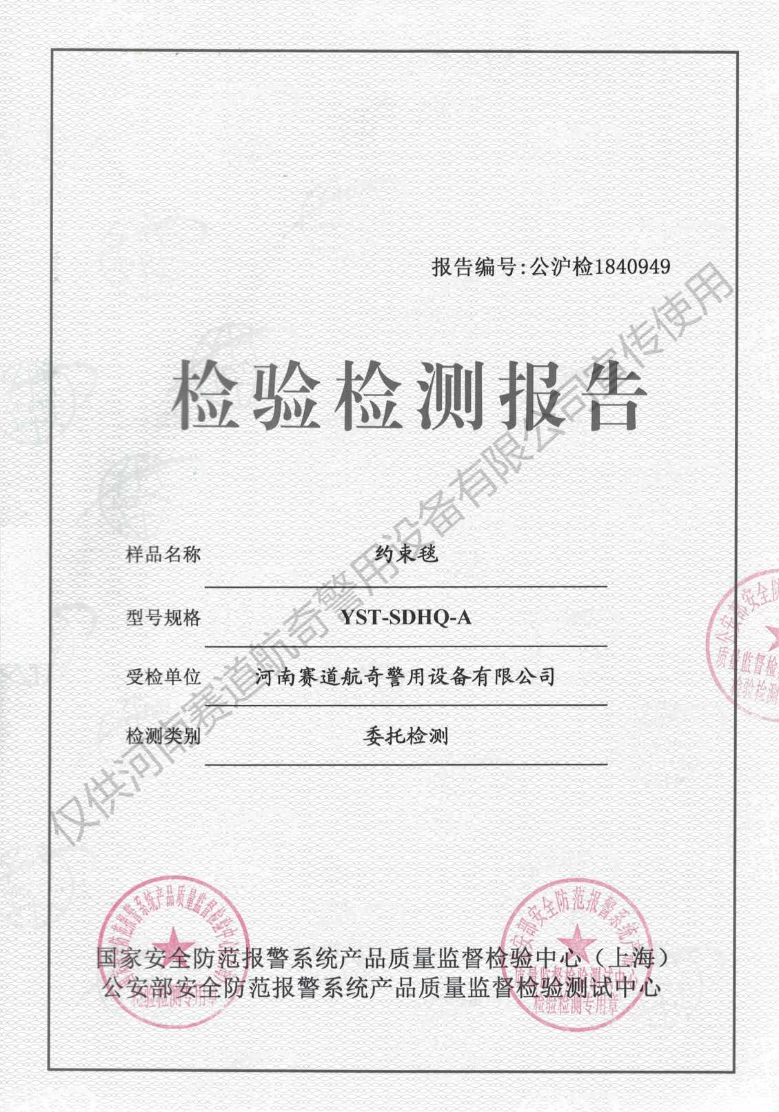 产品检测证书